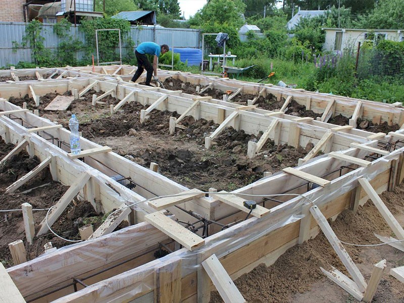 Процесс включает в себя следующие этапы: подготовка грунта, выемка котлована, установка опалубки, укладка арматуры, заливка бетоном и последующее уход за фундаментом.