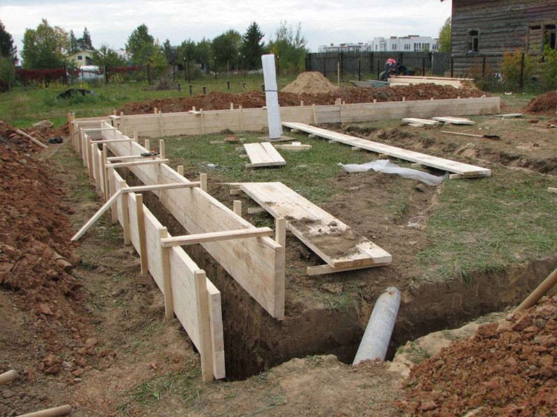 Строительная опалубка устанавливается вокруг периметра будущего фундамента. Опалубка служит для придания формы и поддержки бетонному заливу.
